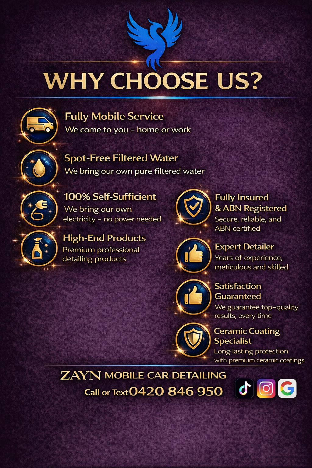 Our ceramic coating service is delivered through a 100% self-sufficient mobile setup, using our own spot-free filtered water, independent power, and professional-grade equipment.